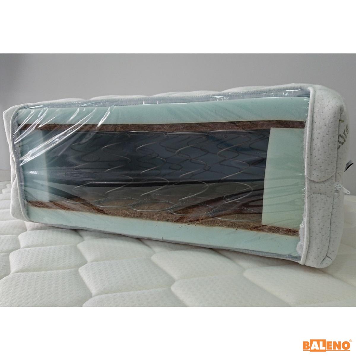 SASTAV: bonell žičano jezgro 14cm, pena 25kg/m² obostrano po 3cm, tabla od kokosovih vlakana 1300gr/m² obostrano, bočna ojačanja od pene 25kg/m², navlaka od visokokvalitetnog materijala sa patent zatvaračem, tako da se može skinuti i prati na 40° što znatno utiče na antialergijska svojstva kopletnog dušeka.